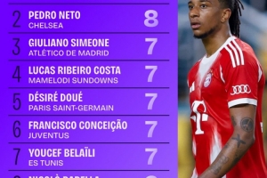 体育资讯6月23日讯 世俱杯第2轮全部战罢,据Squawka数据统计,2轮过后,世俱杯过人王榜单出炉。其中拜仁边锋奥利塞和切尔西内托以8次过人并列居首。